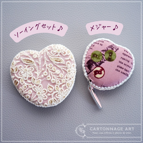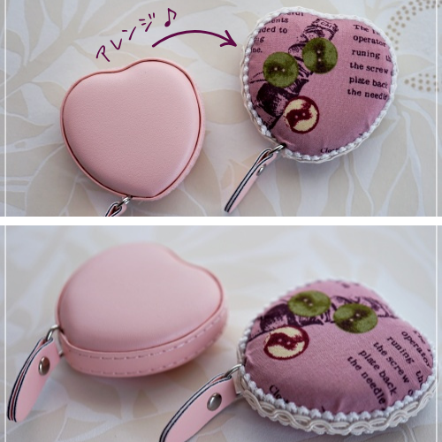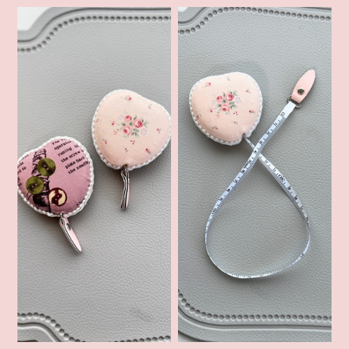 コロンとかわいいハート型フォルムのメジャーです♪《今だけ!》ミニハギレ2枚セットプレゼント!(柄はお選びいただけません)