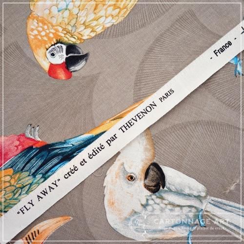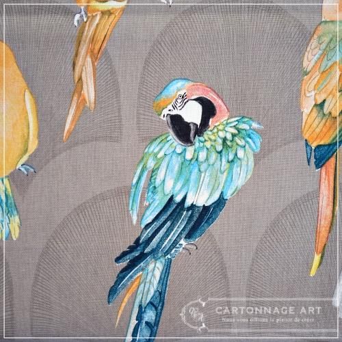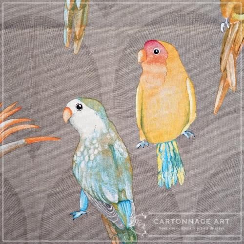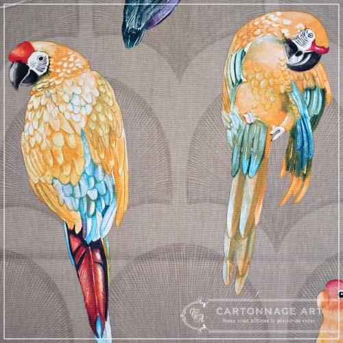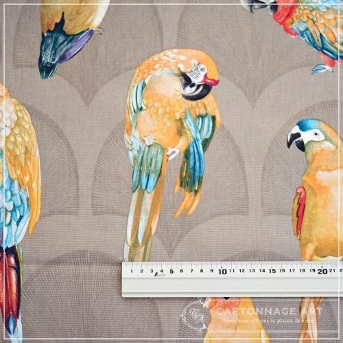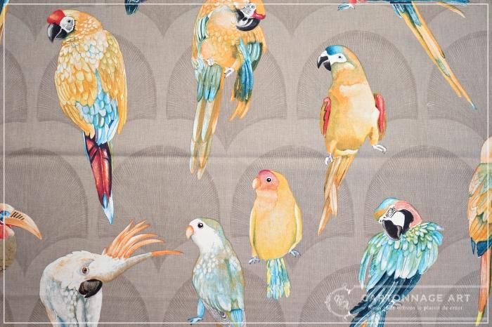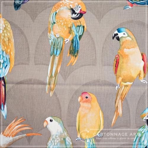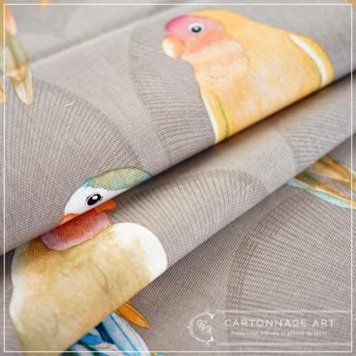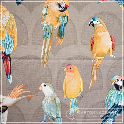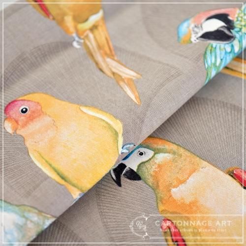 オウムや小鳥がが描かれた、色鮮やかな水彩画タッチの素敵な柄ですね♪