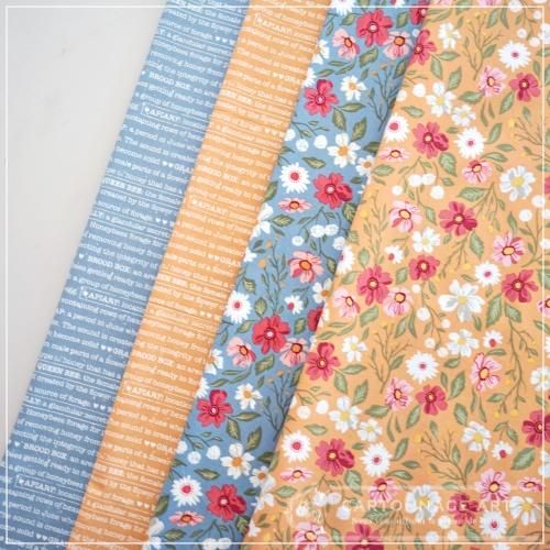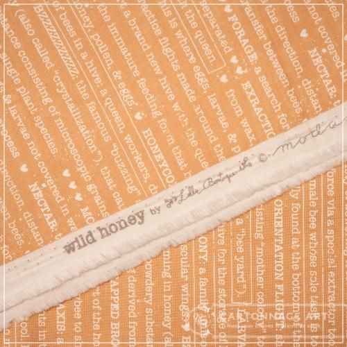 「Wild Honey(ワイルドハニー)」は、Moda Fabrics(モダ・ファブリックス)のLella Boutique(レラ・ブティック)による、陽だまりの野原や羽音を立てるミツバチから着想を得た、温かみと遊び心のあるコレクションです。 素朴な魅力を持つこのコレクションは、豊かなカラーパレットで表現されています。 この黄金色のオーカー生地には、ダークピンクとホワイトの花柄があしらわれ、そこに黄色と白の小さな花のつぼみが絡む繊細なツタがアクセントとして添えられています。